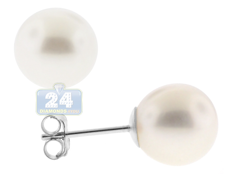 Masterly amazed with cultured freshwater pearls, available in 3, 4, 5, 6, 7, 8, 9 mm, this pair of stud earrings is a classic piece of jewelry. They are produced from lustrous 14k white gold, and secured with comfortable push backs. These gorgeous studs will add just the right touch of glitz!