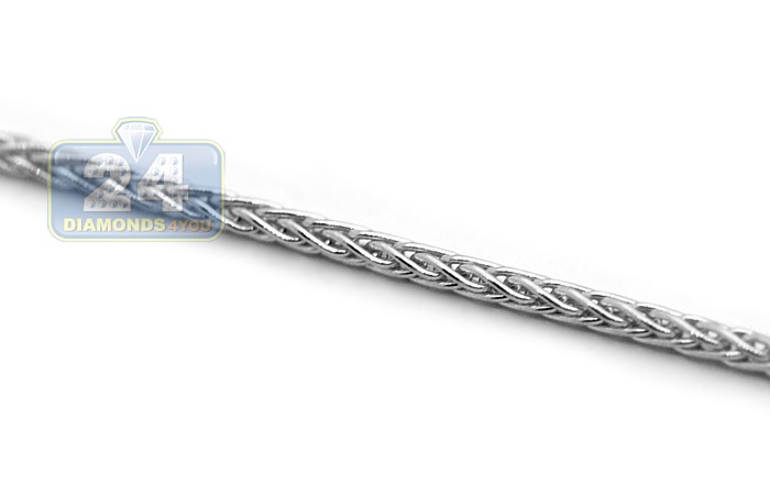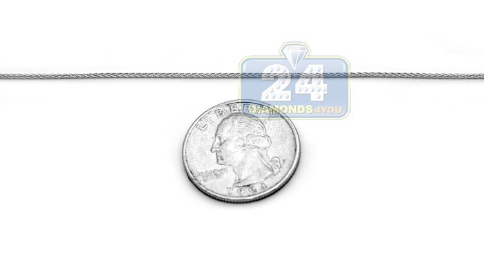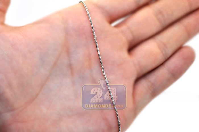 14K White Gold Wheat Link Unisex Chain 1 mm 18 Inches