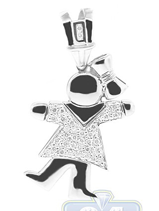 Girl's night out or an evening on the town, have a little fun with this glittering girl figure pendant! Professionally crafted in cool 14k white gold, it's precisely polished for very smooth touch. The little girl pendant is set with 0.26 carat of icy white round brilliant-cut real diamonds, SI1-SI2 clarity and G-H color. Our women's diamond pendant measures 36 mm in dangling height, and the figure is 25 x 19 mm. This trendy jewelry piece is sure to add a feminine finish touch to your look!