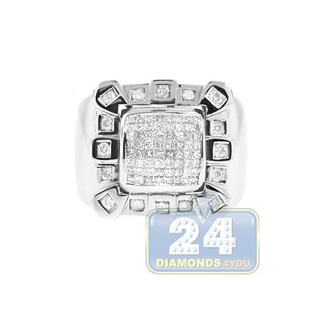 14K White Gold 1.06 ct Mixed Diamond Mens Square Ring