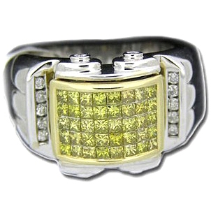 14K White Gold 1.50 ct Yellow Princess Cut Diamond Mens Ring