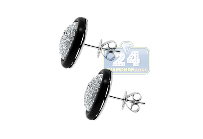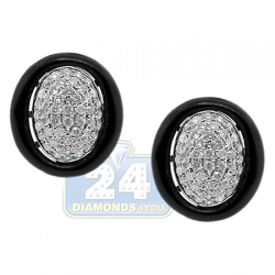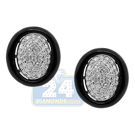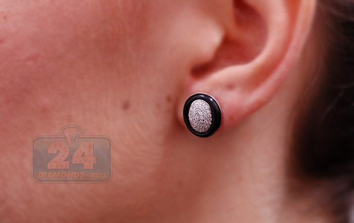 14K White Gold Onyx 1.00 ct Diamond Womens Oval Stud Earrings