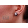 These pretty oval stud earrings are paved with sparkling icy white genuine diamonds in the center, and accentuated by mysterious black onyx around. The settings are handmade of cool 14k white gold with high-polished shiny finish. Our women's stud earrigns measure 14 x 12 mm, and secured by comfortable screw backs. Gorgeous jewelry piece is a perfect addition to your outfit for everyday wear or special occasions!