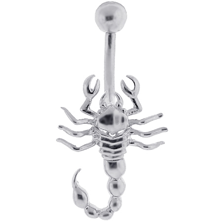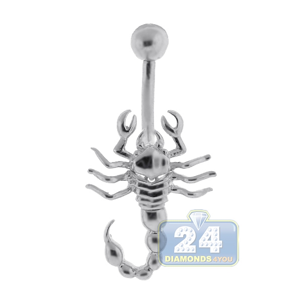 14K White Gold Scorpion Womens Belly Navel Ring