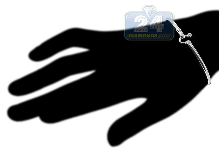 14K White Gold Signle Diamond Womens Hook Bangle Bracelet