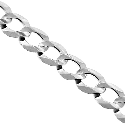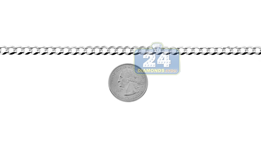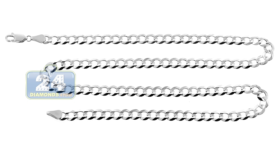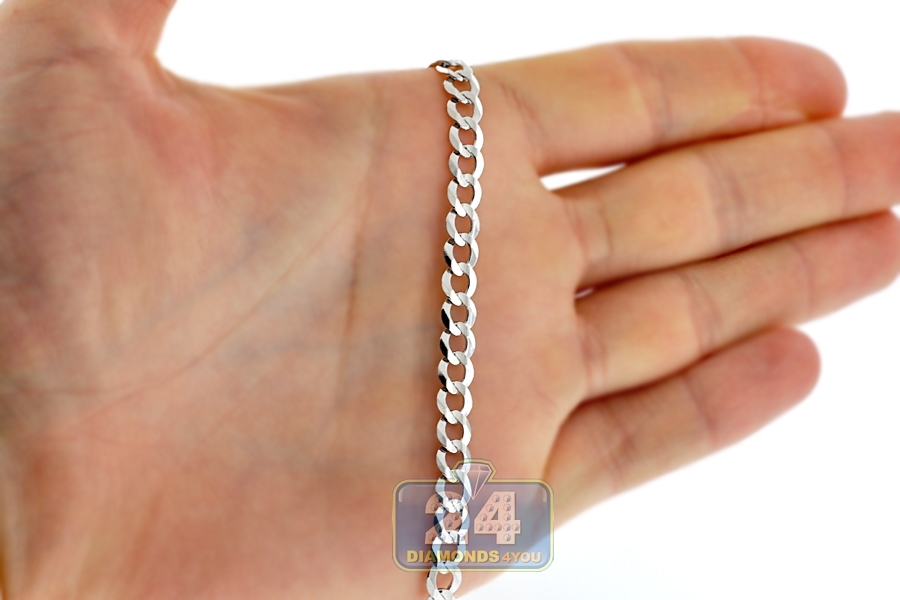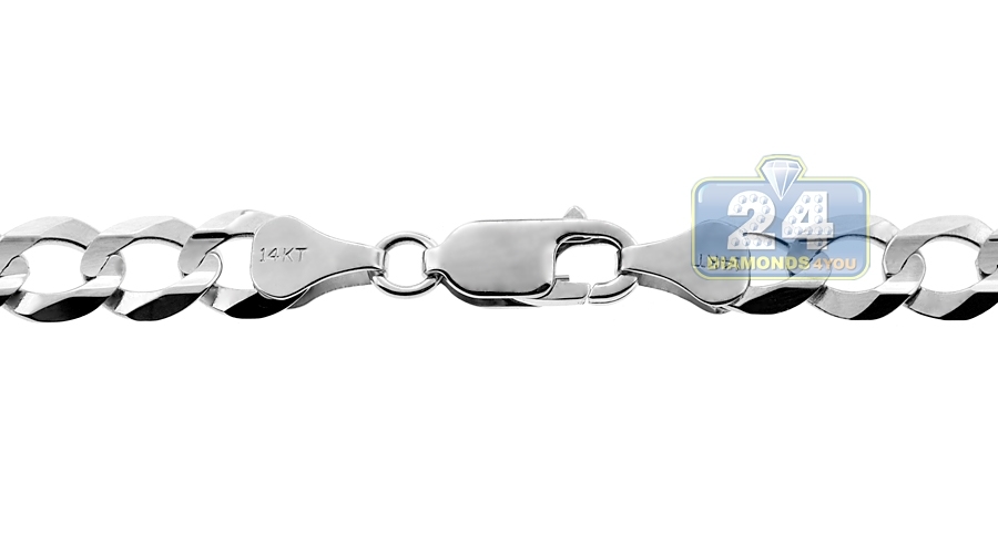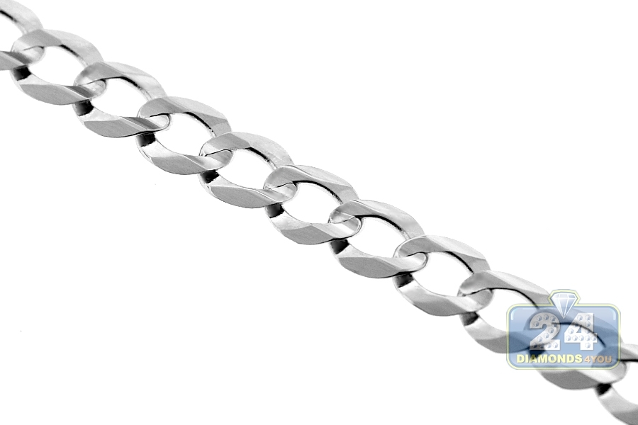 14K White Gold Solid Flat Cuban Link Mens Chain 6 mm