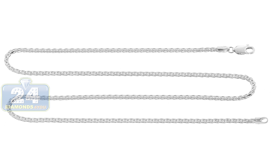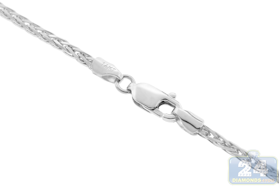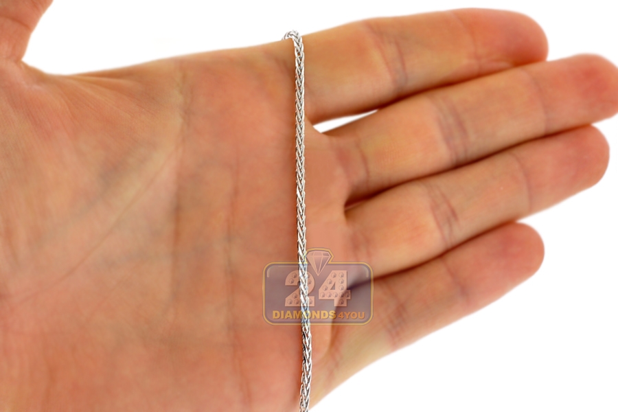 14K White Gold Wheat Spiga Solid Link Mens Chain 2 mm
