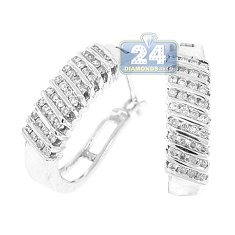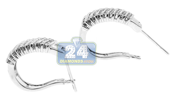 Alluring and unique, these small hoop earrings are timeless jewelry! Professionally created from cool 14k white gold, they're high-polished for a smooth touch. Our women's oval hoops are channel set with 0.60 carat of white round shaped genuine diamonds. The petite pair measure 21 mm in height and 6 mm in width. These captivating diamond hoop earrings have a secure back and an everlasting look!