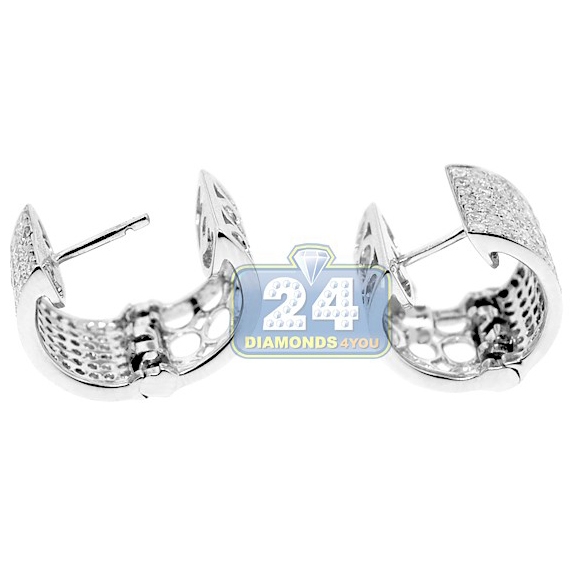 14K White Gold 1.24 ct Diamond Wide Round Hoop Earrings
