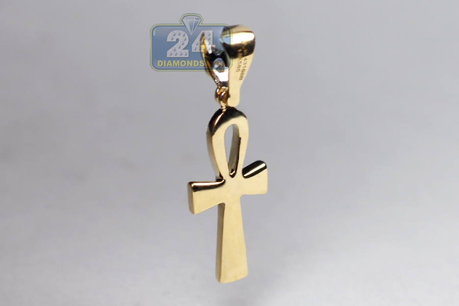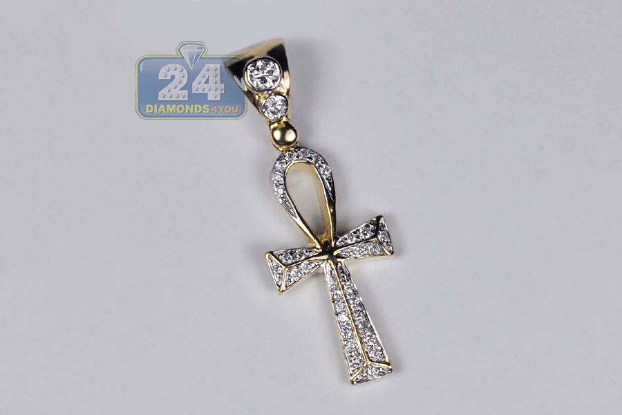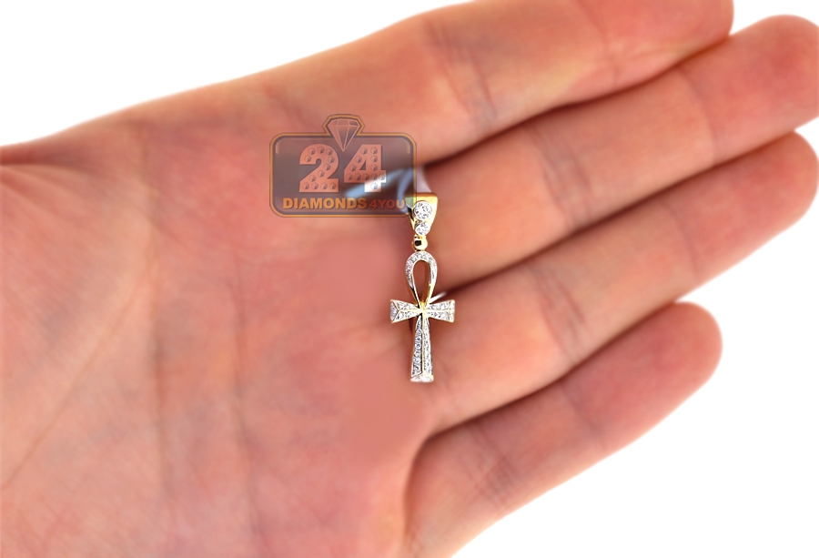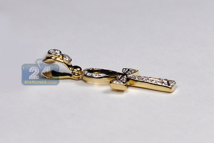 14K Yellow Gold 0.18 ct Diamond Ankh Cross Womens Pendant