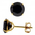 14K Yellow Gold 0.20 ct Black Round CZ Push Stud Kids Earrings 3 mm