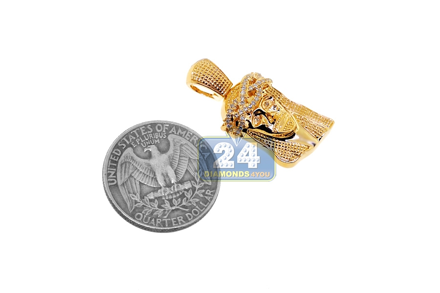 14K Yellow Gold 0.23 ct Diamond Jesus Christ Head Mens Pendant