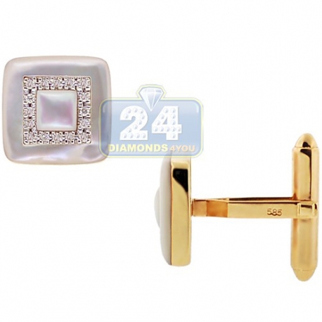 14K Yellow Gold 0.29 ct Diamond Pearl Square Mens Cuff Links