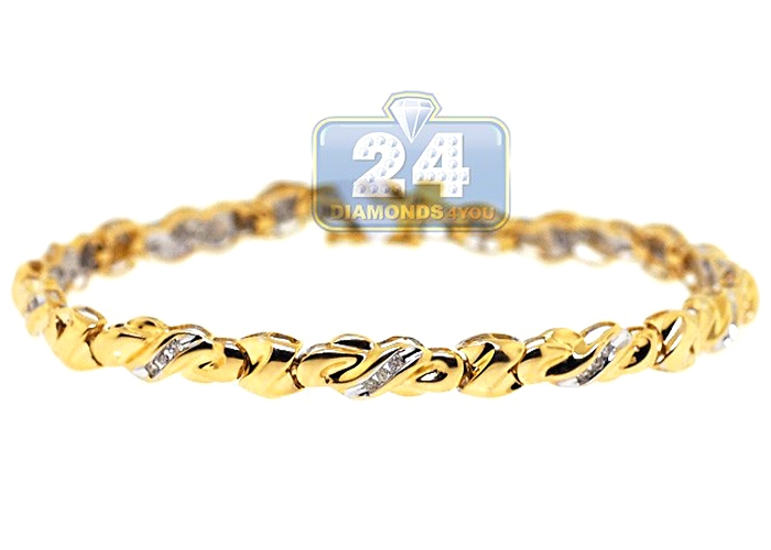 14K Yellow Gold 0.35 ct Diamond Wave Womens Tennis Bracelet