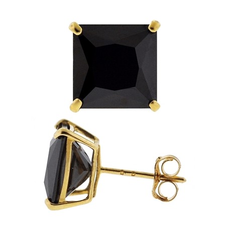 Beautifully set with two high-quality black princess-cut cubic zirconia stones of 3 mm that equivalent to 0.40 carat, these stud earrings are a brilliant way to add sparkle to kid's look! They are made of lustrous 14k yellow gold, and secured with a user-friendly push back. This pair of small studs is an adorable piece of jewelry your kid will love!