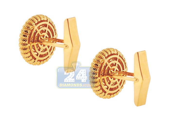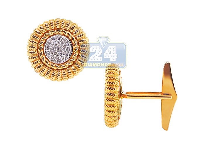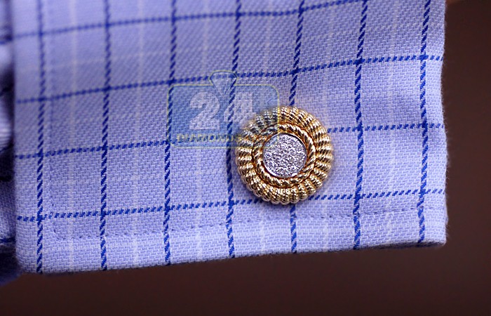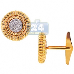 14K Yellow Gold 0.43 ct Diamond Mens Vintage Bezel Round Cuff Links