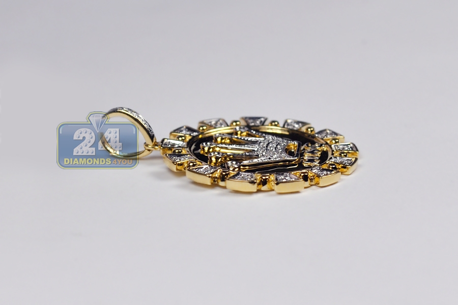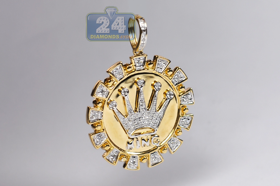 14K Yellow Gold 0.49 ct Diamond King Crown Mens Pendant