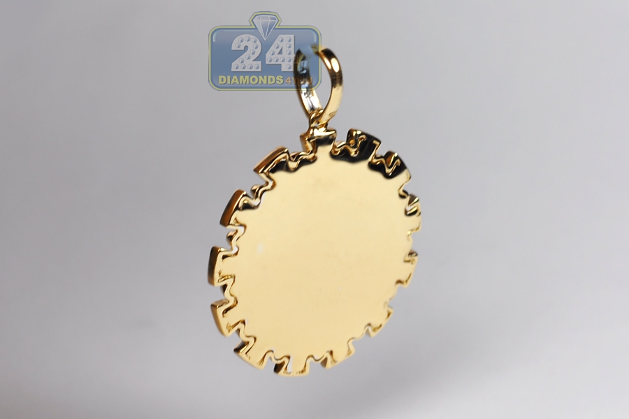 Our diamond crown pendant is a loving tribute to the king of your heart! It's masterly created from warm 14k yellow gold, and high-polished to add extra luster. It's also lovely encrusted with 0.49 carat of white round-cut natural diamonds. Total length of jewelry piece is 44 mm, and the circle is 33 x 33 mm. The bail can perfectly fit a necklace of up to 5 mm in thickness. This men's round medallion is a handsome addition to any collection!