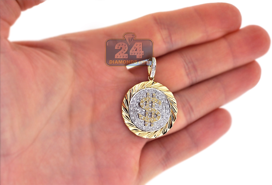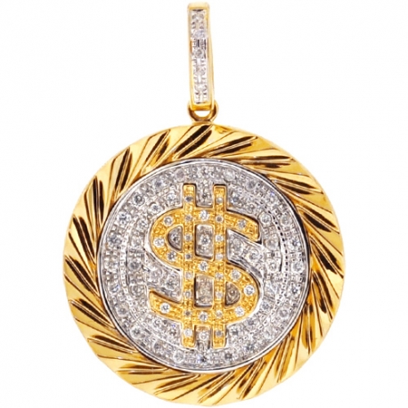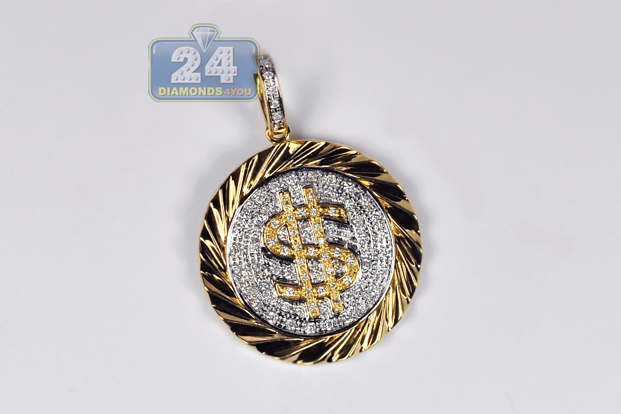 14K Yellow Gold 0.50 ct Diamond Dollar Sign Mens Pendant