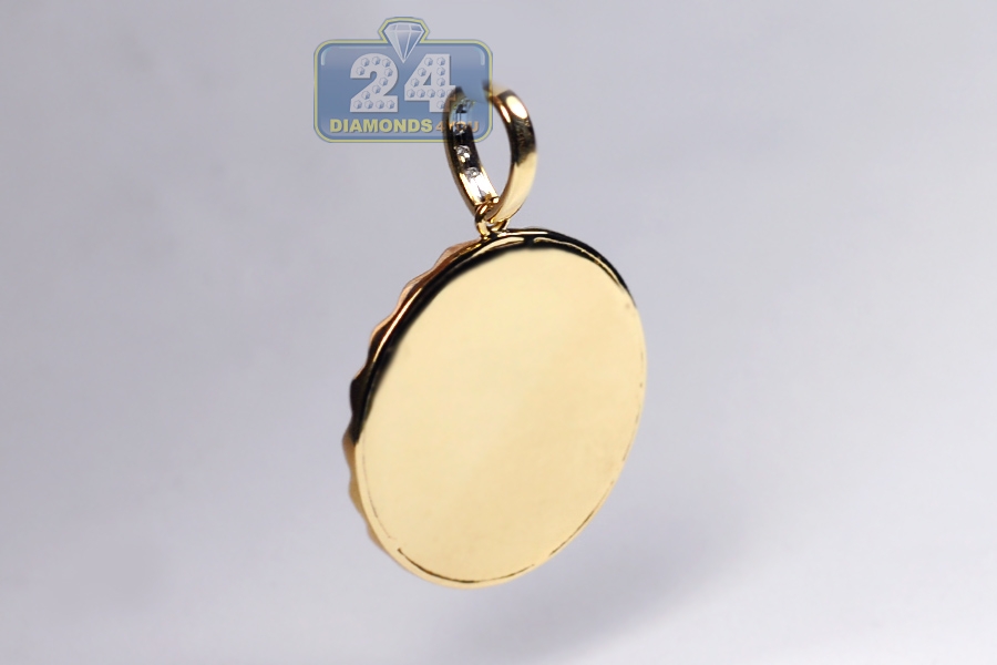 Show your prosperity wearing our diamond dollar sign medallion! Artfully made of warm 14k yellow gold, it features highly polished sparkling finish. It's lovely set with white round-cut genuine diamonds totaling 0.50 carat. Total length of the piece is 38 mm, and the circle measures 26 x 26 mm. The bail can fit a 5 mm necklace. This men's round pendant is an exceptional jewelry that will turn heads!