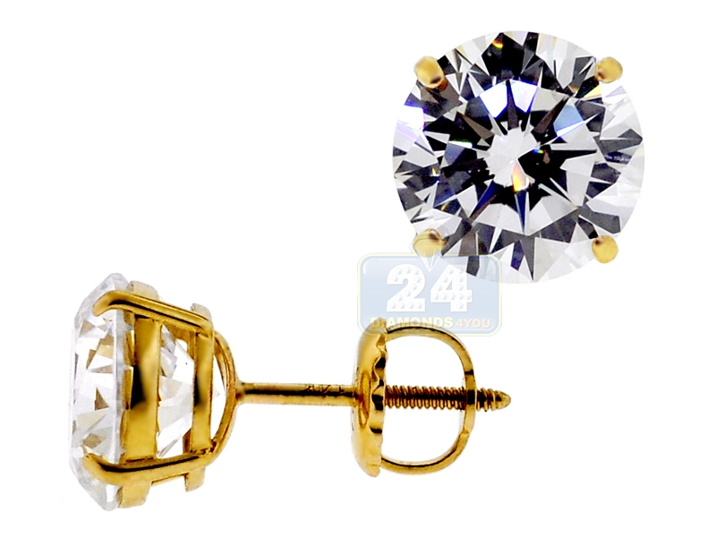 14K Yellow Gold 0.50 ct Round CZ Screw Stud Earrings 4 mm
