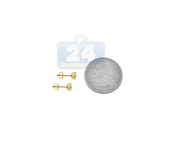 Encrusted with two highest quality 4 mm cubic zirconia that equivalent to 0.50 carat, these stud earrings sparkle like real diamond piece of jewelry! Four-prong setting is made of warm 14k yellow gold, and secured with a safe screw back clasp. Add an elegant touch to your look with this pair of brilliant studs.