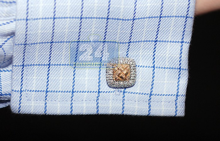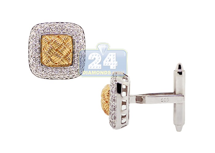 14K Two Tone Gold 0.54 ct Diamond Square Woven Mens Cuff Links