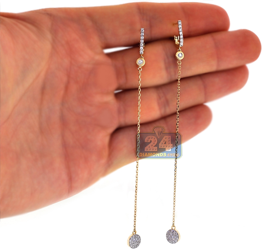 14K Yellow Gold 0.54 ct Diamond Womens Long Dangle Earrings