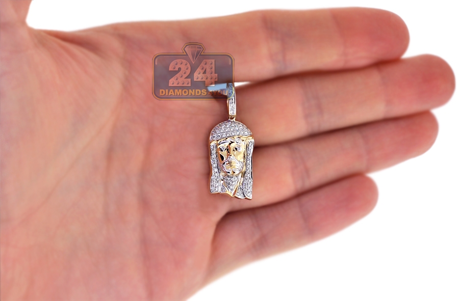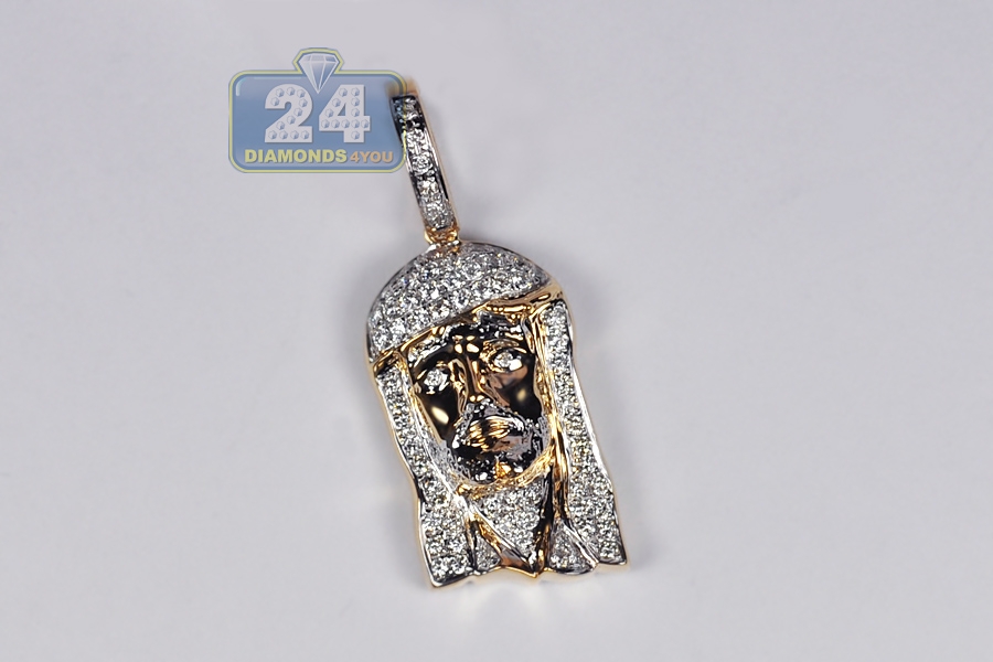 14K Yellow Gold 0.56 ct Diamond Jesus Face Mens Pendant