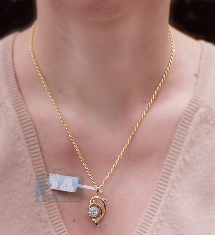 14K Yellow Gold 0.58 ct Diamond Dolphin Womens Pendant