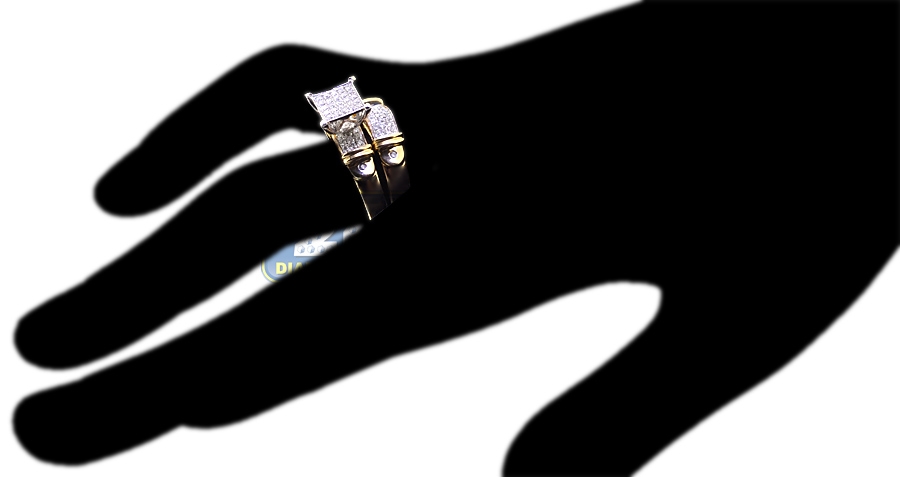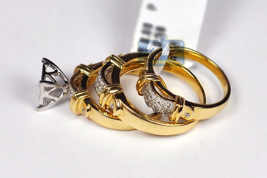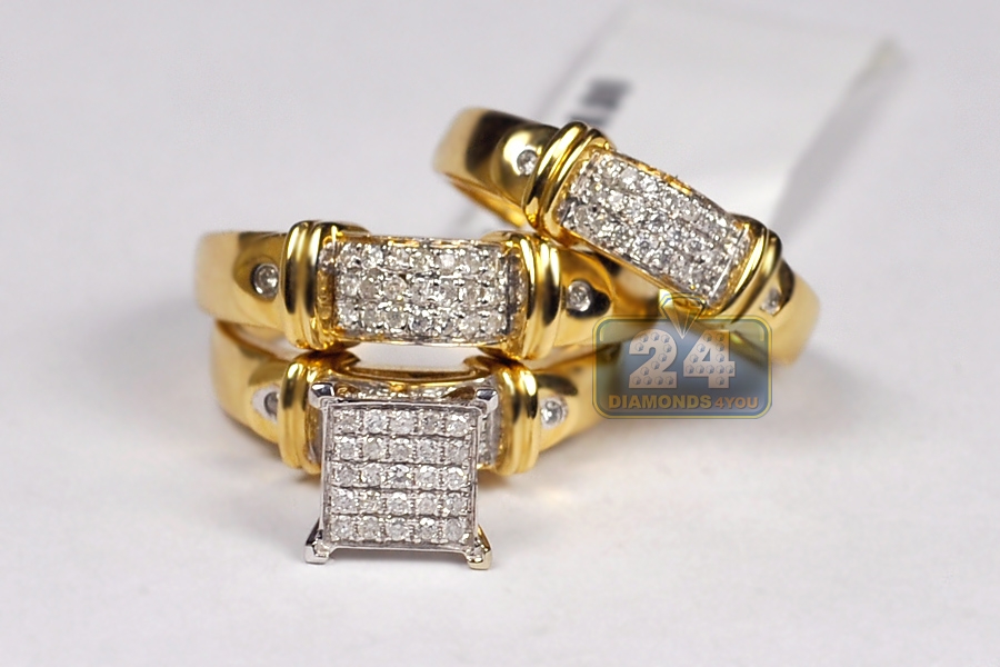 14K Yellow Gold 0.59 ct Diamond Pave Bridal Three Rings Set