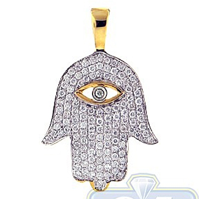 14K Yellow Gold 0.59 ct Diamond Evil Eye Hamsa Hand Pendant