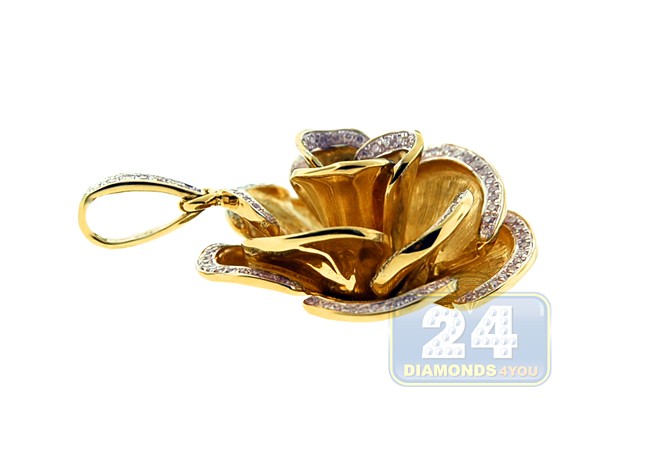 14K Yellow Gold 0.62 ct Diamond Rose Flower Womens Pendant