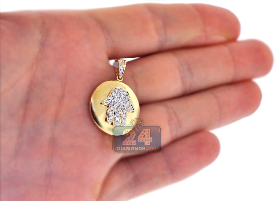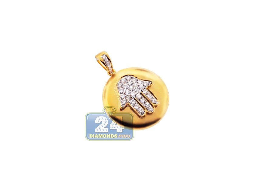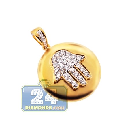 14K Yellow Gold 0.64 ct Diamond Hamsa Medallion Pendant