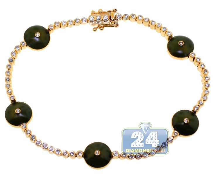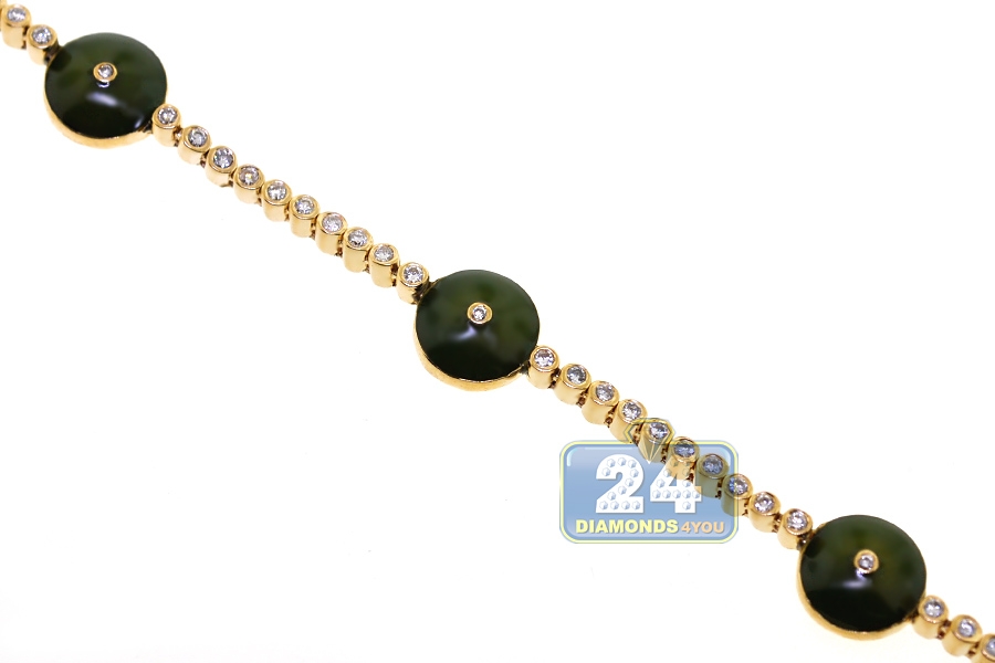 14K Yellow Gold 0.85 ct Diamond Green Evil Eye Womens Bracelet