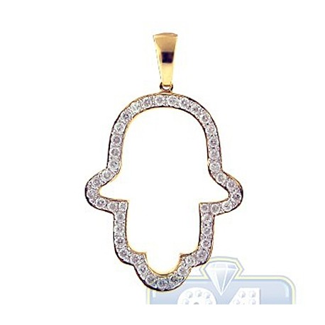 14K Yellow Gold 0.85 ct Diamond Open Hamsa Hand Pendant