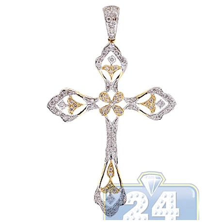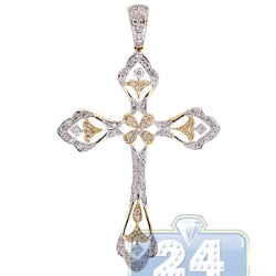 14K Yellow Gold 0.89 ct Diamond Filigree Cross Mens Pendant