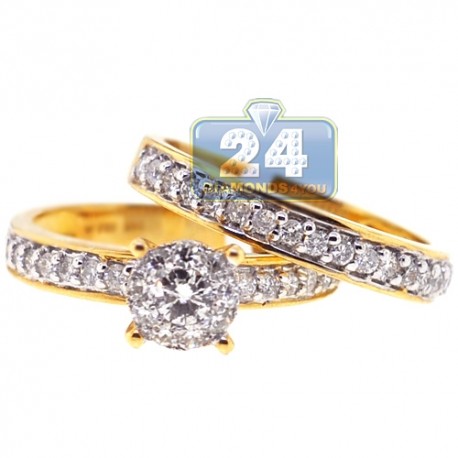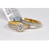 14K Yellow Gold 0.89 ct Diamond Womens Engagement 2 Rings Set