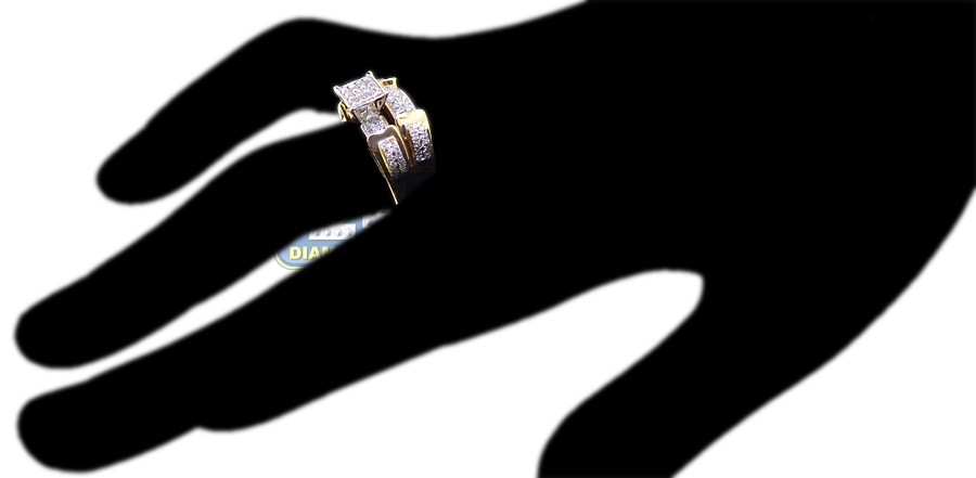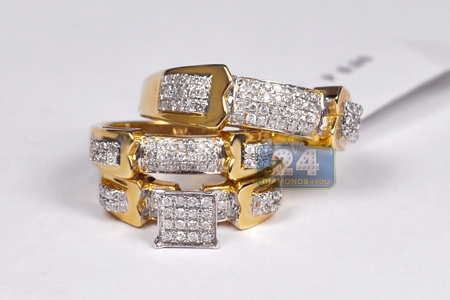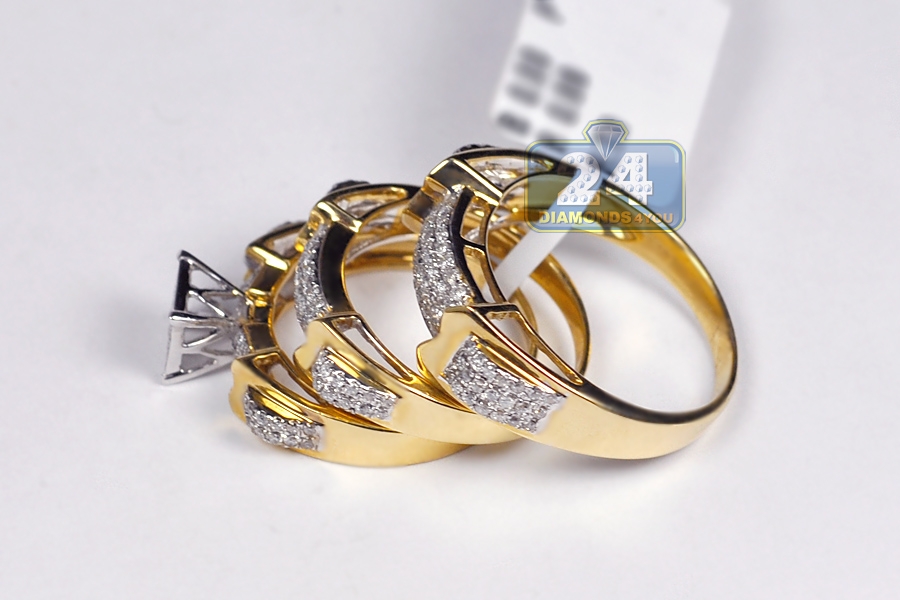 14K Yellow Gold 0.91 ct Diamond Pave Bridal Three Ring Set