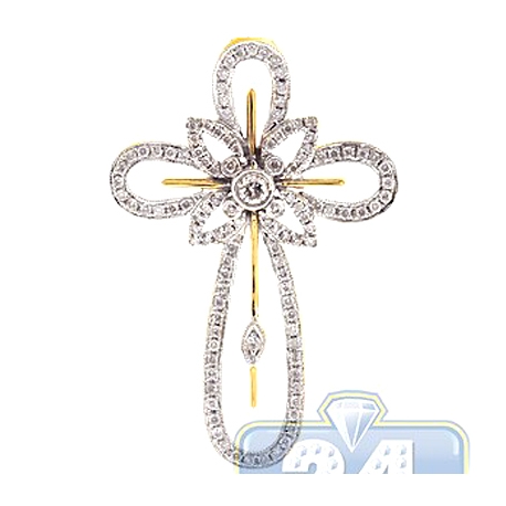 14K Yellow Gold 0.92 ct Diamond Halo Cross Mens Pendant