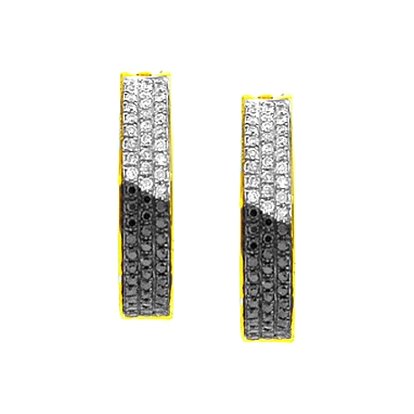 14K Yellow Gold 0.95 ct Zebra Diamond Womens Hoop Earrings