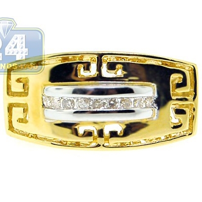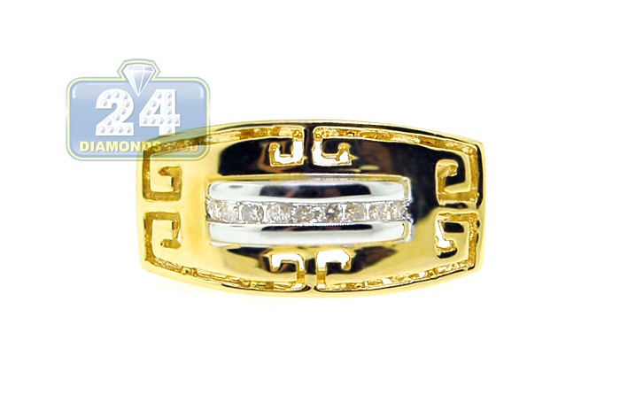 14K Yellow Gold 0.14 ct Diamond Ancient Greek Pattern Ring