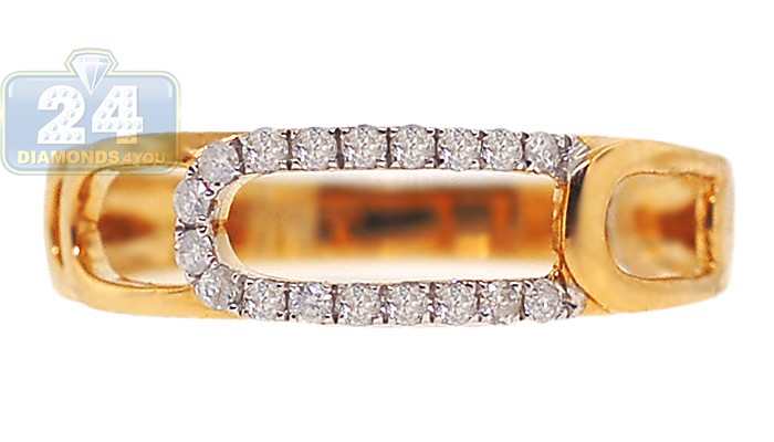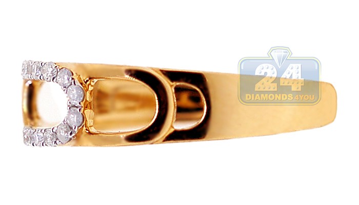 This stylish ring is featuring a modern openwork design that is absolutely perfect for any occasion! It is masterly handmade of sunny 14k yellow gold with highly polished shiny finish, and gorgeously encrusted with natural icy white round cut diamonds weighting approximately 0.18 carat in total. Each precious stone is eye clean and sparkling, with G-H color and SI1-SI2 clarity grades. What an elegant addition to your look!