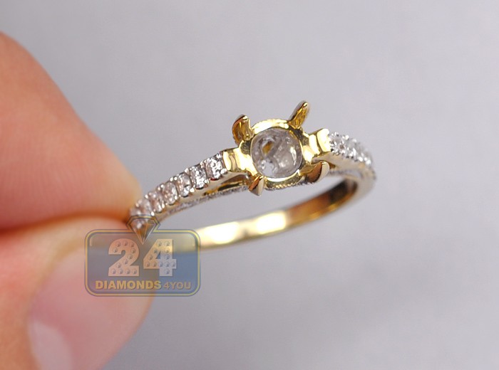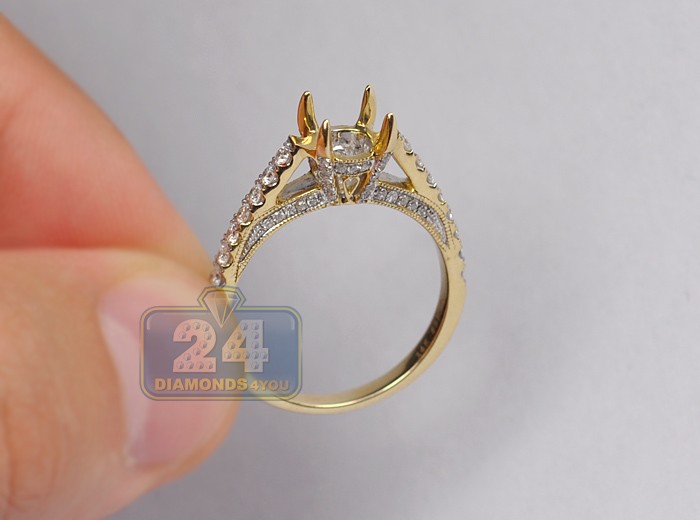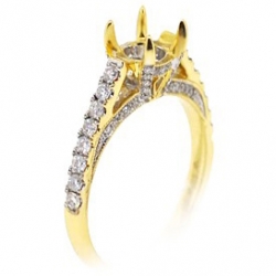 14K Yellow Gold Diamond Vintage Semi Mount Engagement Ring