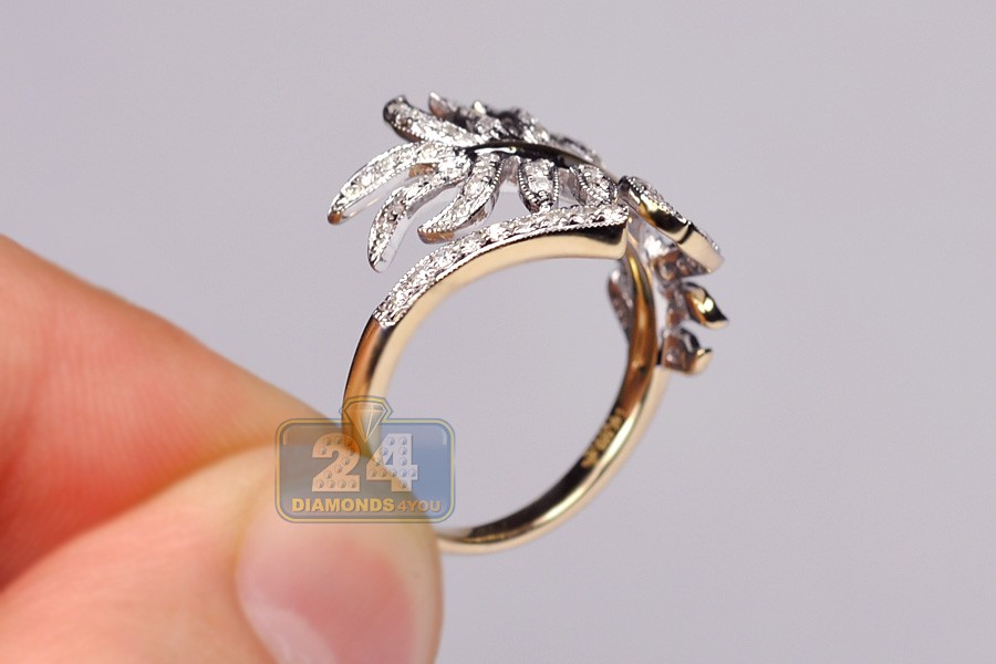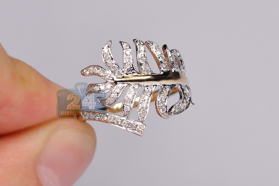 14K Yellow Gold 0.51 ct Diamond Womens Leaf Wrap Ring