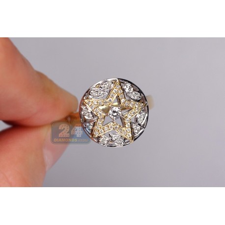 14K Yellow Gold 0.53 ct Diamond Round Openwork Star Womens Ring