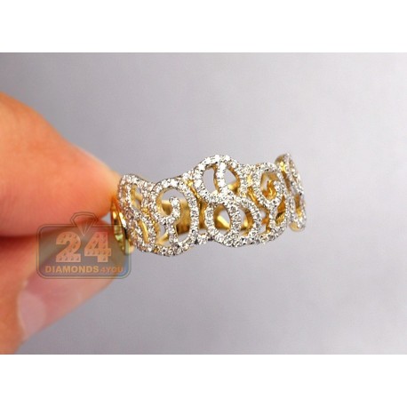 14K Yellow Gold 0.57 ct Diamond Openwork Filigree Womens Ring
