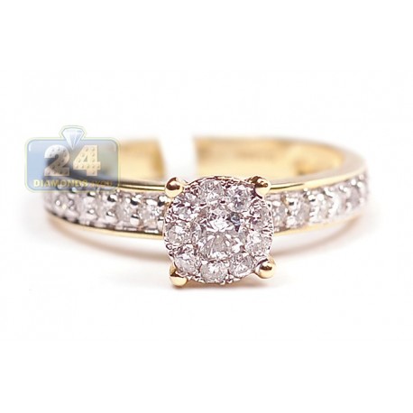14K Yellow Gold 0.60 ct Diamond Cluster Vintage Engagement Ring
