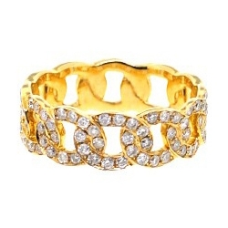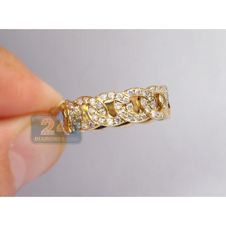 Get ready to wear something classy and fascinating! Our women's ring features a bunch of beautiful links breaded with each other. The jewel is expertly crafted in warming 14k yellow gold, has highly polished finish, and skillfully accented with 0.71 carat of icy white round cut diamonds. These are absolutely natural precious stones of G-H color and SI1-SI2 clarity.