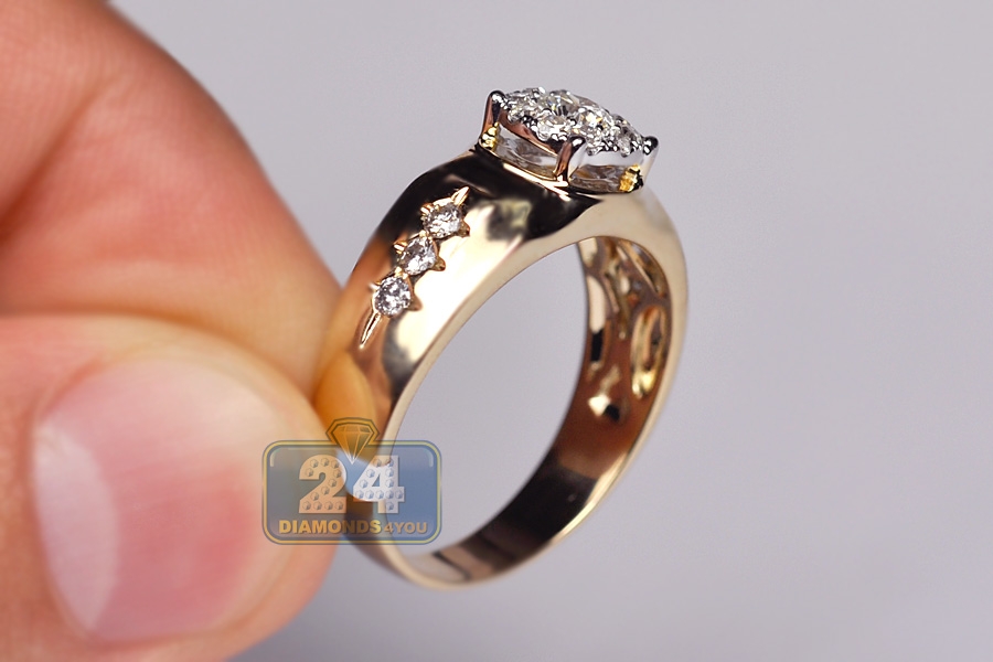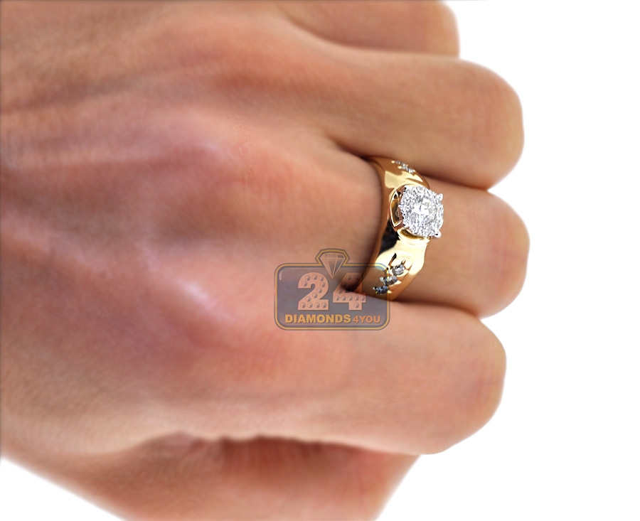 14K Yellow Gold 0.75 ct Diamond Illusion Mens Solitaire Ring